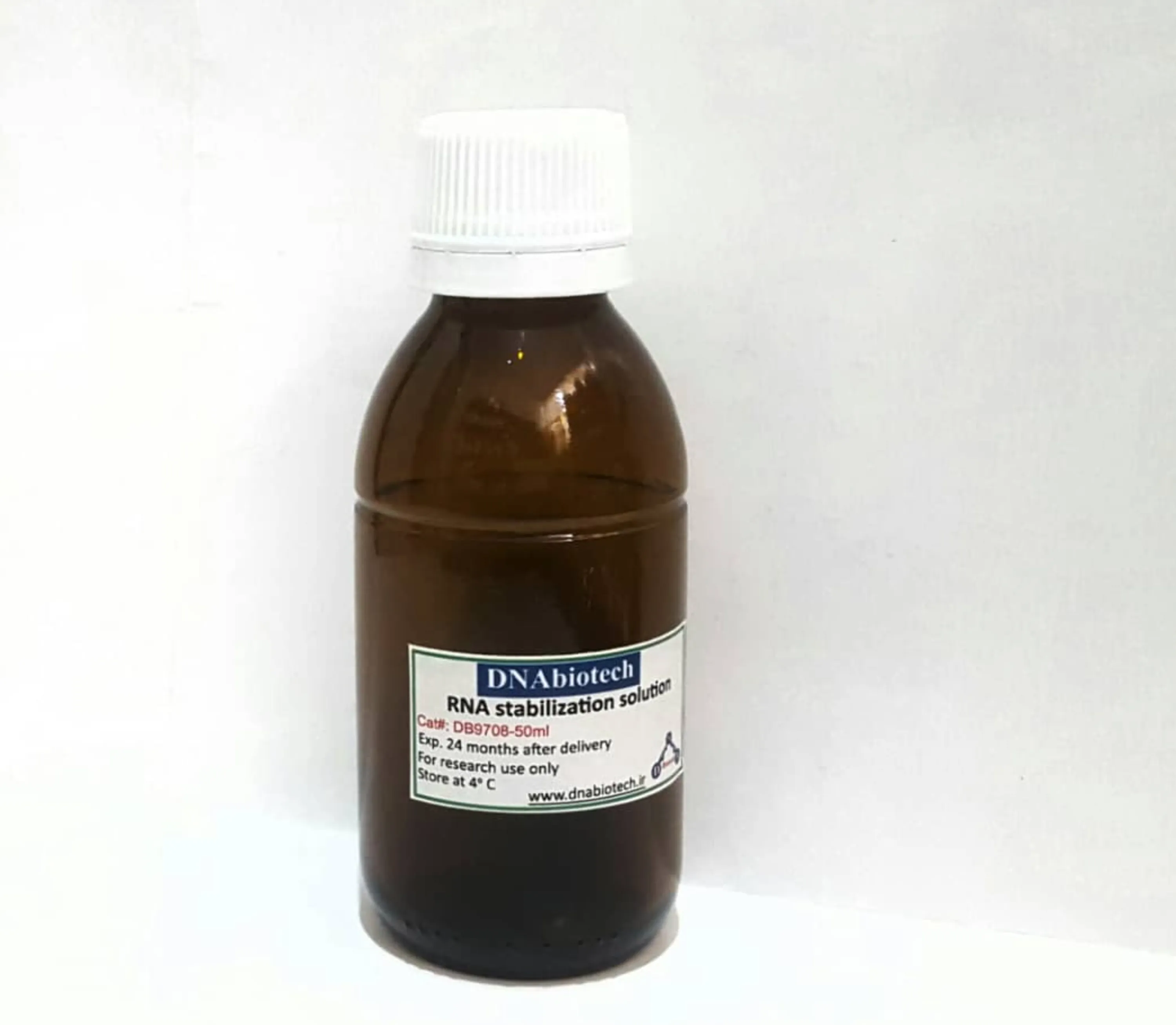 RNA Stabilization solution is an aqueous tissue storage reagent that stabilizes and protects cellular RNA in intact, unfrozen tissue samples. this reagent eliminates the need to immediately process tissue samples or to freeze samples in liquid nitrogen for later processing. Tissue pieces can be harvested and submerged in RNA Stabilization solution for storage without jeopardizing the quality or quantity of RNA obtained after subsequent RNA isolation. RNA Stabilization solution can be added to cell pellets and even cells in medium. The samples can then be stored frozen or unfrozen.